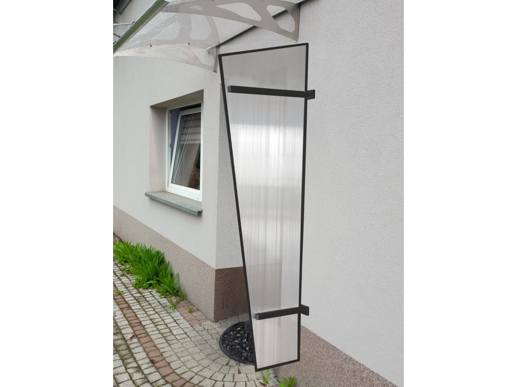 Tento model boční stěny se montuje samostatně a se stříškou není spojen, proto je naprosto univerzální a "pasuje" ke všem modelům stříšek nad dveře.