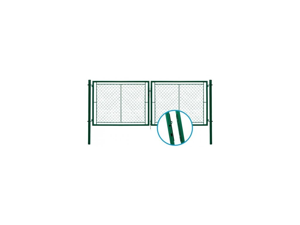 Plotová brána dvoukřídlá IDEAL výplň čtyřhranné pletivo - 3605 (šířka na střed sloupků) x 1750 mm s kovovými oky pro visací zámek Pilecký.