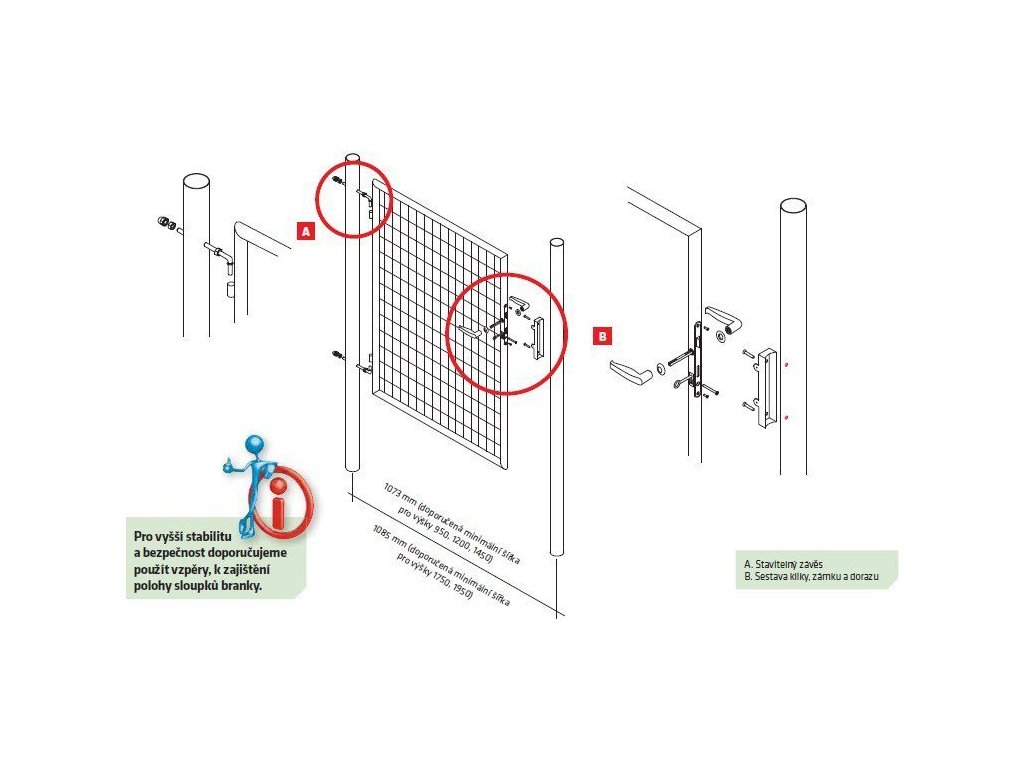 - Součástí branky jsou 2 sloupky včetně stavitelných závěsů: Ø 48 mm