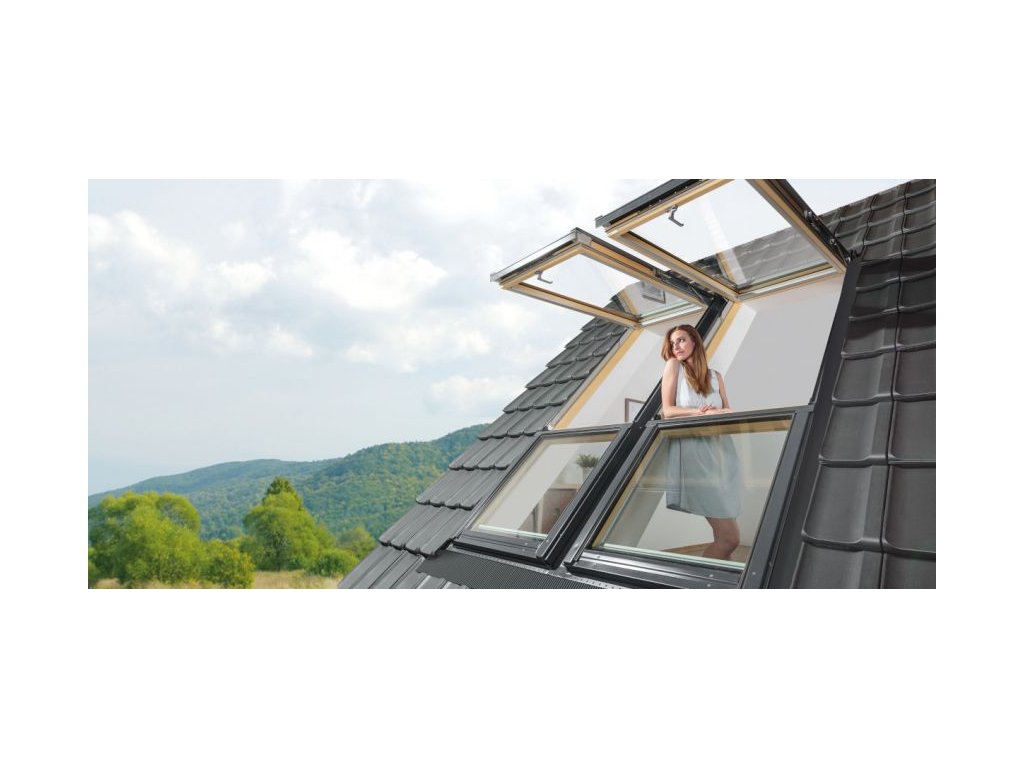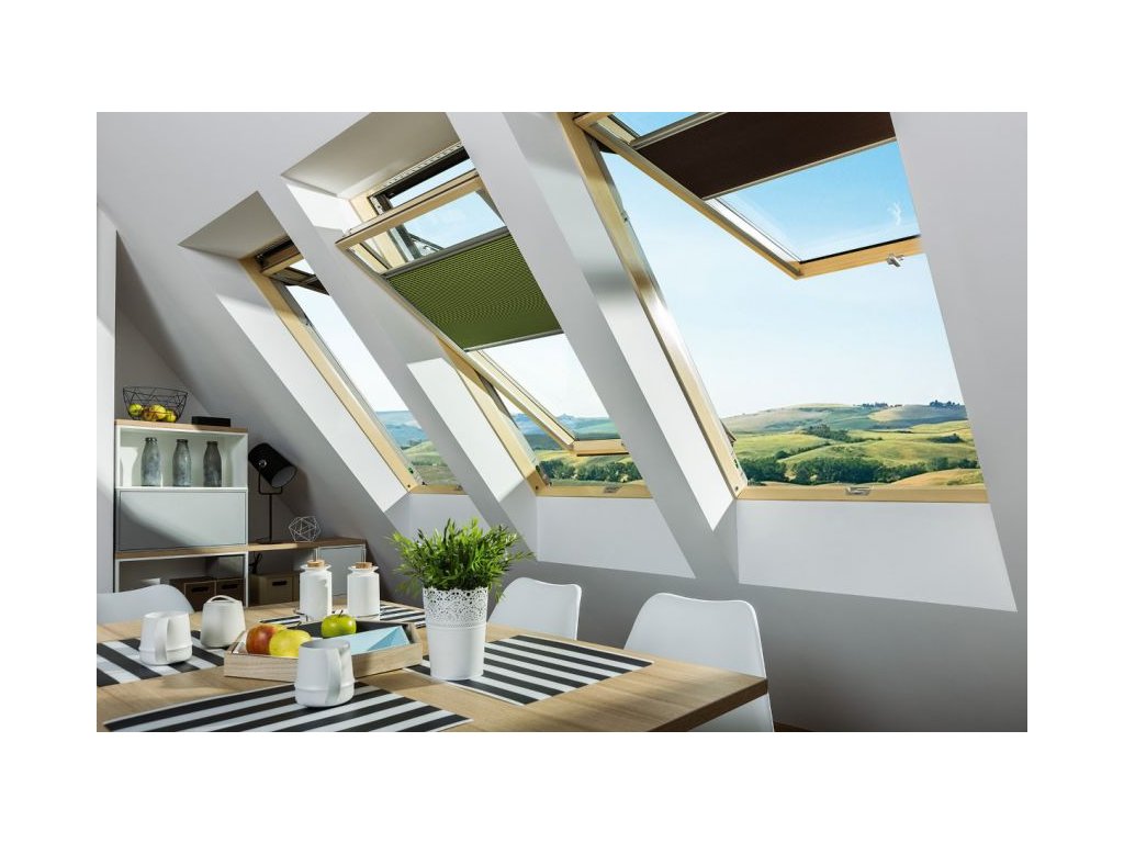 Střešní okno dřevěné FAKRO FPU-V U3 preSelect 114 x 118 cm - vybavené dvěma oddělenými funkcemi otevírání, výklopnou a kyvnou