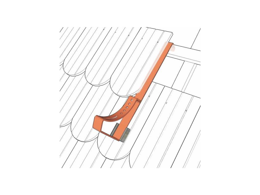 Držák komínových lávek UNI D pro pevné a bezpečné připevnění jednotlivých lávek na betonové nebo keramické střešní krytiny