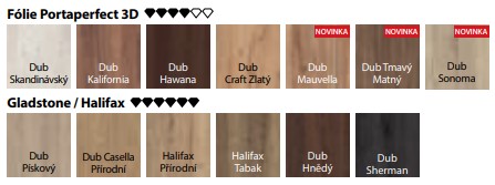 | Povrch: | Fólie Portaperfect 3D, Deska Gladstone/Halifax |