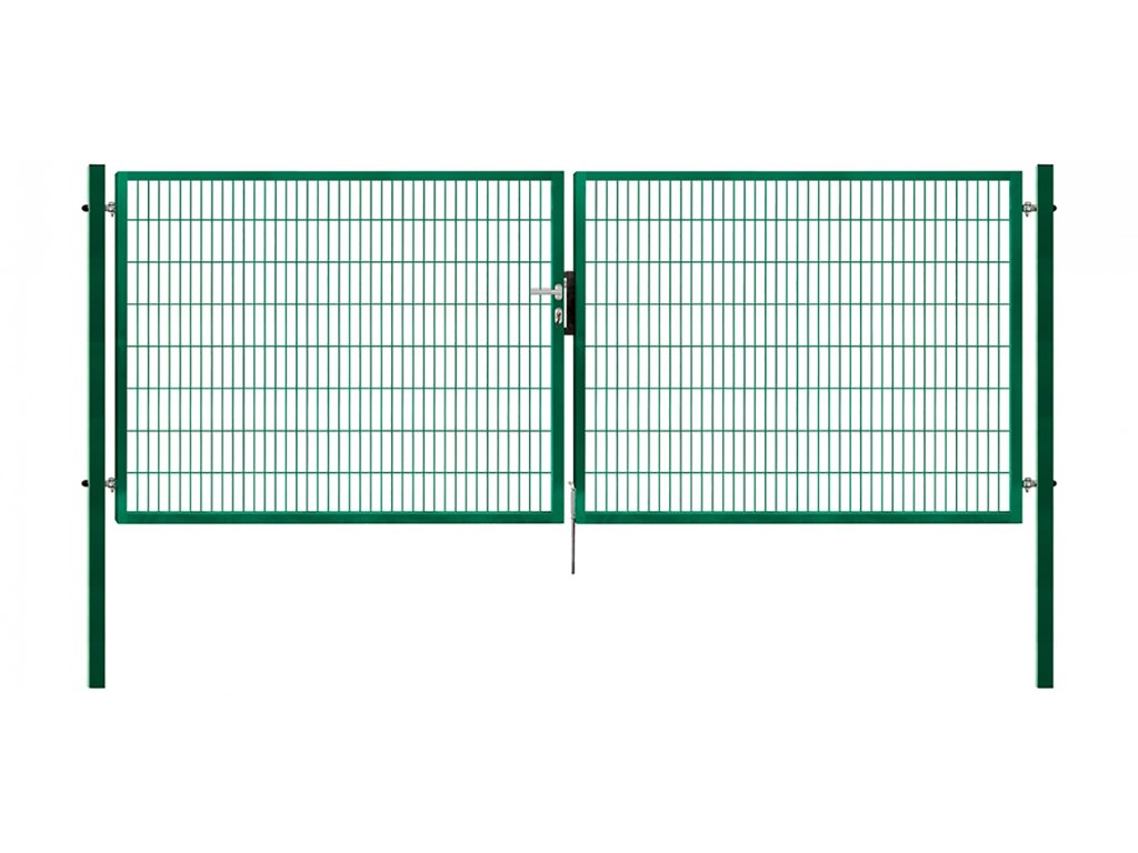 Plotová brána dvoukřídlá PILOFOR SUPER výplň svařovaný panel rovný - 4090 (šířka na střed sloupků) x 1380 mm se zámkem Pilecký.
