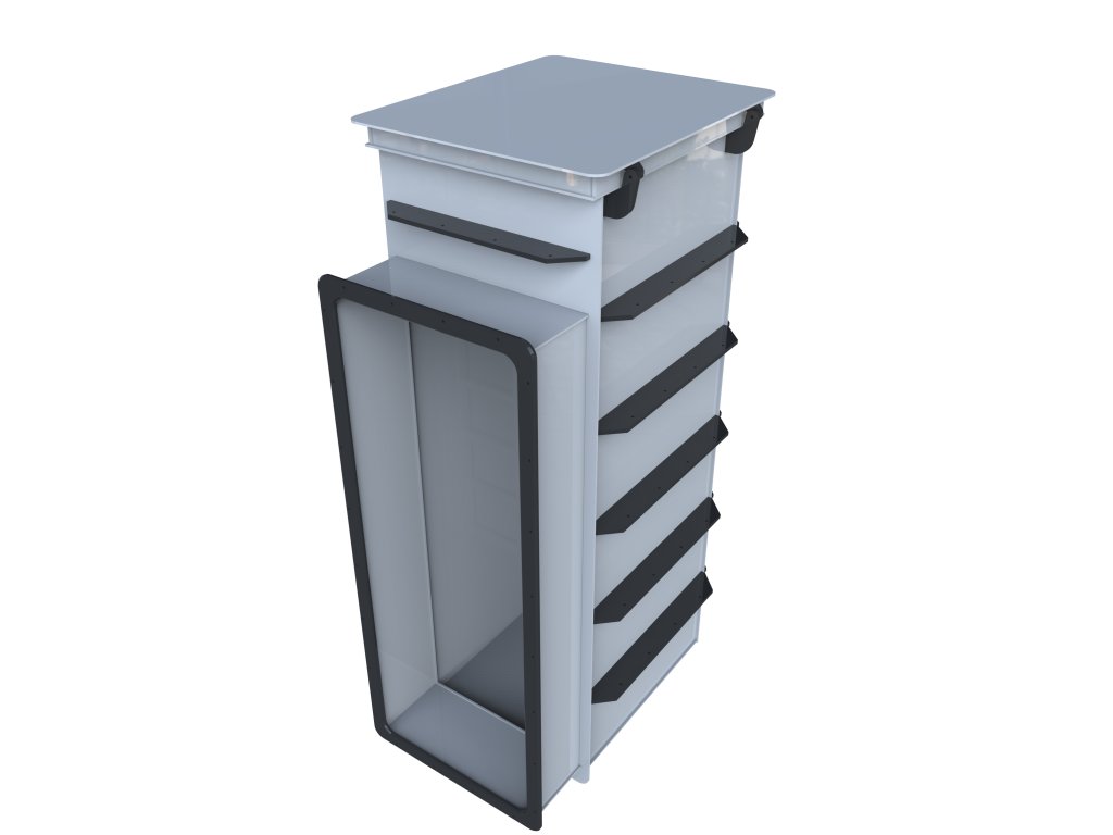 Úniková šachta pro sklep Kolomaki Quick. Pohodlný hliníkový žebřík pro lehké použití a prostý lehký poklop.