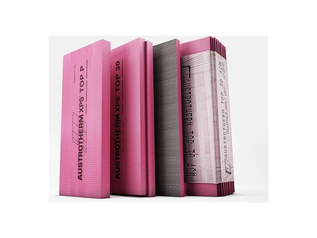 Tepelněizolační desky Austrotherm XPS TOP P GK se vyznačují rovnou hranou a strukturovaným (zdrsněným) povrchem. Uvedené vlastnosti povrchu zajišťují výbornou přilnavost omítkových a stěrkových hmot. Spojení mezi deskami je zajištěno metodou tepelného lepení.