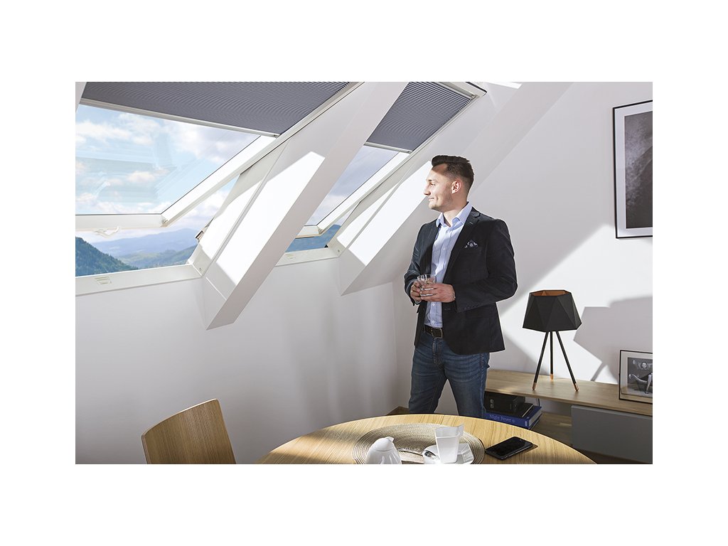 Kyvné okno plastové střešní Fakro PTP V U3 94 x 118 cm - jsou vyrobena z vícekomorových PVC bílých profilů zpevněných hliníkovými výztužemi