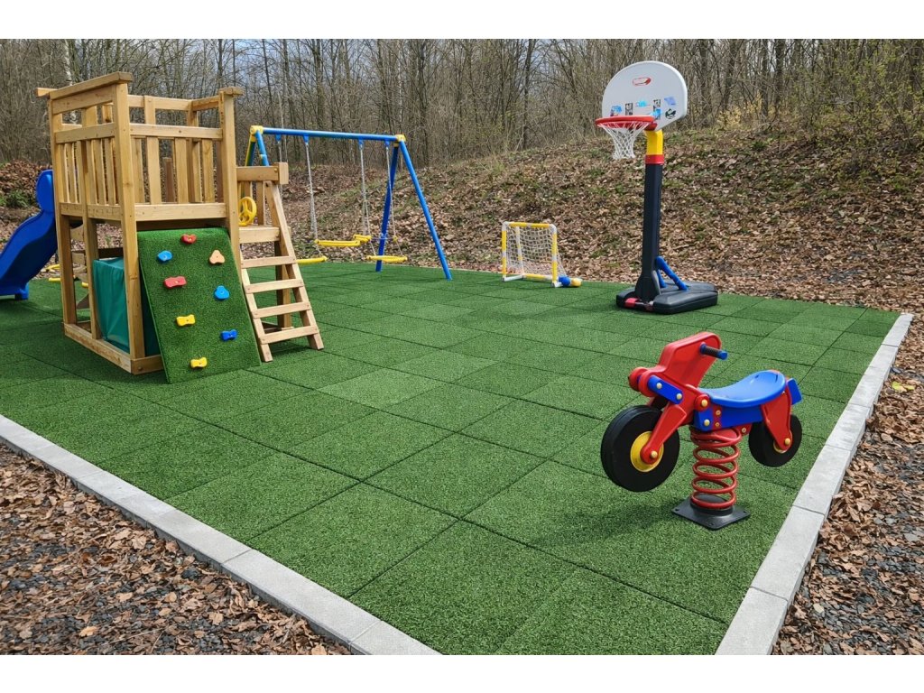 Zelená gumová dlažba NOVISA VIRGIN 50 x 50 x 2,5 cm s umělou trávou