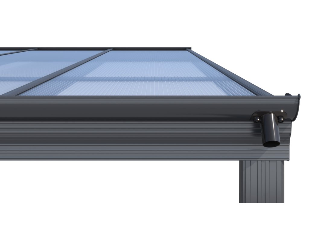 Hliníková pergola ke zdi, ve které naleznete příjemné místo odpočinku hned vedle vašeho domu. Konstrukce pergoly je z odolné hliníkové slitiny a je nastříkaná práškovou vypalovanou barvou (komaxit), a proto trvale odolává přírodním klimatickým vlivům. Střecha je vyrobená z polykarbonátových komůrkových dvoustěnných desek síly 6 mm, které dodáváme ve 3 odstínech - čiré nebo mléčně bílé průsvitné (tzv. OPÁL) nebo kouřově hnědé (BRONZ). Z důvodu zajištění maximální kvality používáme na střechu pergoly výhradně prémiové komůrkové polykarbonátové desky MARLON ST LONGLIFE (výrobce BRETT MARTIN Velká Británie), které v ČR prošly náročným testy ve státem akreditovaných zkušebnách jako stavební materiál (požární zkoušky, mechanické zkoušky, zdravotní nezávadnost). Na nerozbitnost polykarbonátové střechy krupobitím poskytujeme smluvní prodlouženou záruku 10 let.