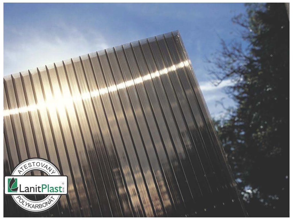 - střecha z KOUŘOVĚ HNĚDÉHO dvoustěnného KOMŮRKOVÉHO polykarbonátu 6 mm
