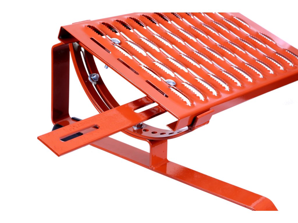 Kolébkovitý držák komínových lávek UNI pro pevné a bezpečné připevnění jednotlivých lávek na střechu a jejich regulaci a přizpůsobení sklonu střechy