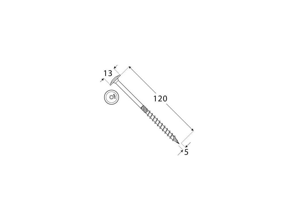 Pozinkovaný konstrukční vrut CT s talířovou hlavou TORX T25 5 x 120 mm 100 ks