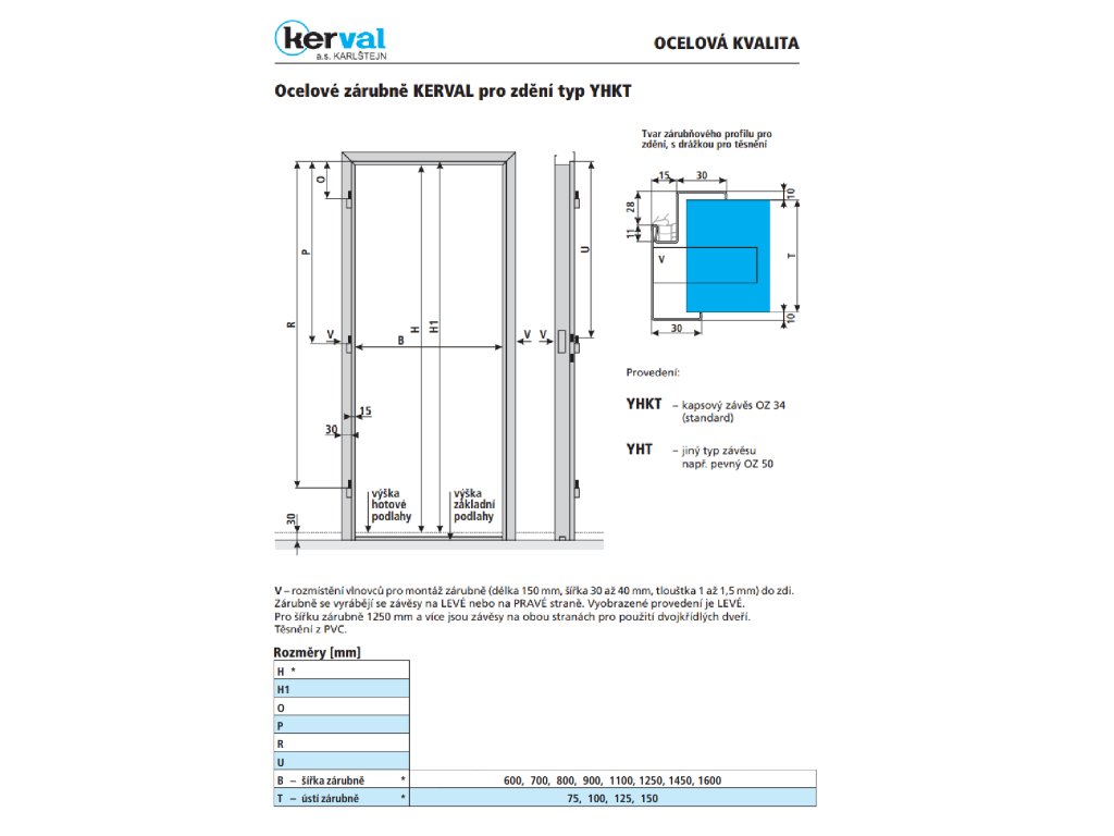 Ocelové zárubně YHKT - 150 / 1450 mm zdění (těsnění, závěs OZ34)