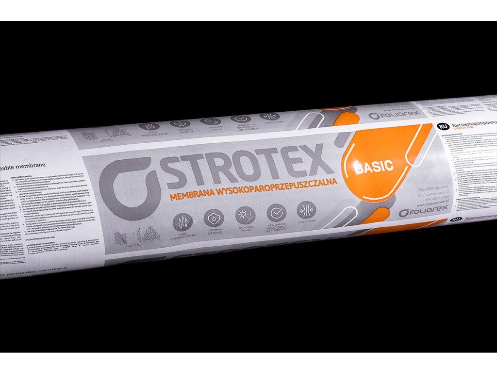 Paropropustná kontaktní membrána STROTEX BASIC 115 je odolná třívrstvá střešní fólie, která slouží pro ekonomické střechy, kde se používá v otevřeném zateplovacím systému. Vyznačuje se velmi vysokou paropropustností a odolností proti vodě. Díky použití inovativní technologie tato membrána eliminuje rozdíl v koncentracích vodních par a účinně chrání střešní izolaci proti vlhkosti. Chrání tepelnou izolaci z vnější strany před deštěm nebo sněhem a může dokonale fungovat jako větruodolný materiál.