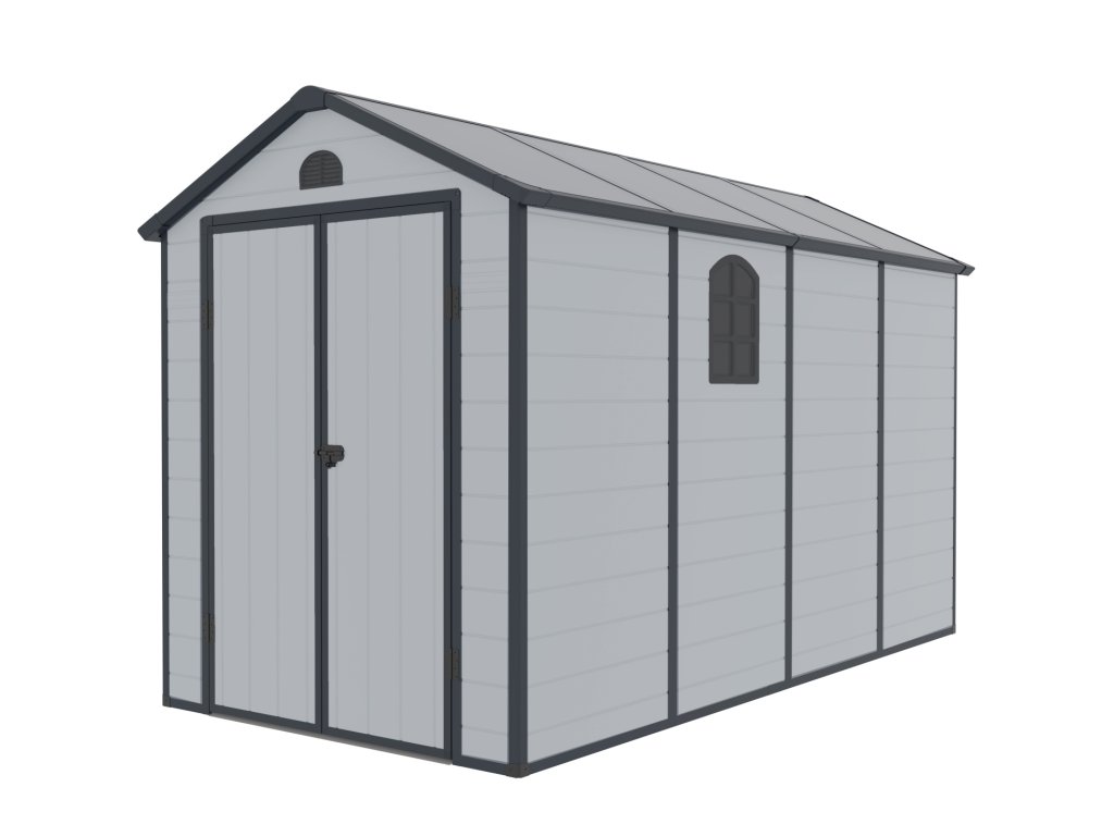 Elegantní designově zajímavý plastový domek LONGFORD 612. Prakticky bezúdržbový zahradní domek využijete pro uskladnění zahradního nářadí, jízdního kola, sekačky, příslušenství k bazénu, dřeva atd. S moderním designem a snadnou montáží je tento domek připraven poskytnout vám praktický a stylový úložný prostor po celý rok.