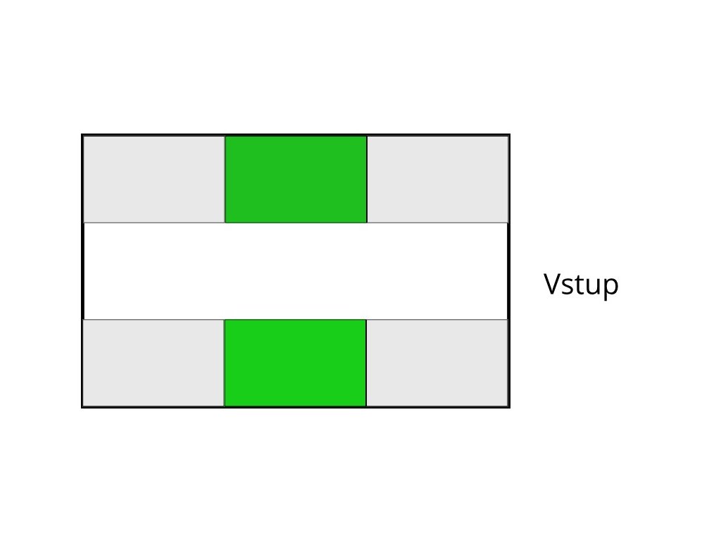 - Pro skleníky delší než 3 m do střední části
