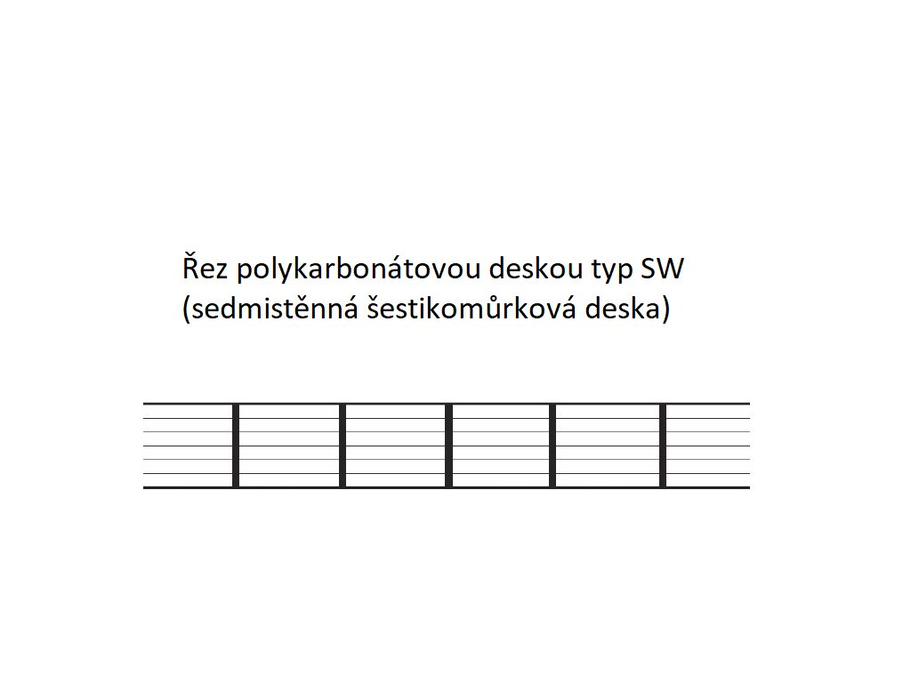 MARLON SW 16 mm, čirá komůrková sedmistěnná deska z polykarbonátu, síla 16 mm, smluvní záruka 10 let na nerozbitnost krupobitím, výrobce BRETT MARTIN (GB)