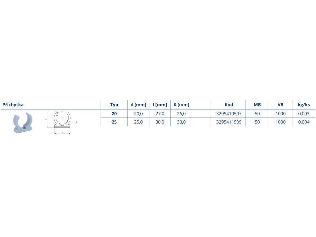 Kompaktní celoplastová příchytka z kopolymeru PP-R je určená jako doplněk pro vodovodní trubky PP-R a PP-RCT, které slouží pro vnitřní rozvody pitné, studené a teplé vody. Vyznačuje se vysokou odolností vůči teplotě i tlaku a nepodléhá korozi. Montáž této příchytky je velice jednoduchá.