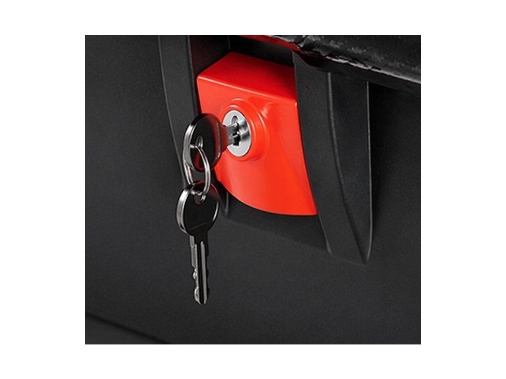 Velkou výhodou je nový bezpečnostní zamykací systém (double-click), který umožňuje rychlé, pohodlné a zároveň bezpečné otevírání a zavírání boxu. Přední bezpečnostní zámek na klíč chrání obsah proti nechtěnému otevření i krádeži.