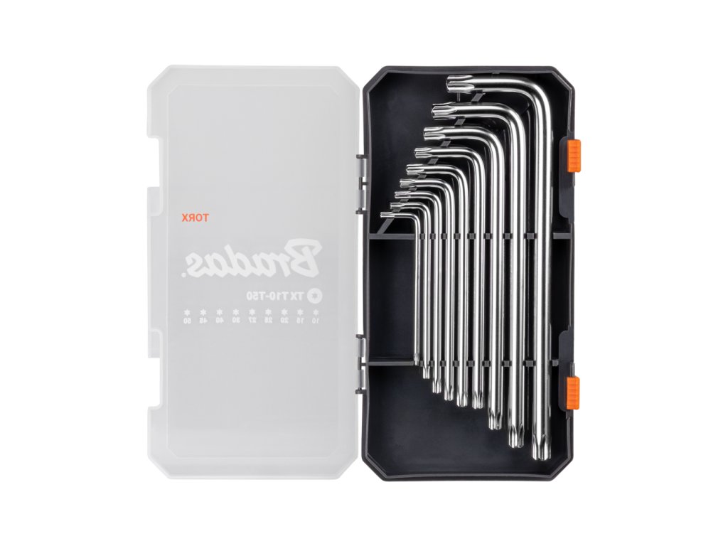 Kvalitní sada TORX klíčů 9 ks od výrobce BRADAS je ideální volbou pro profesionály i domácí kutily. Rozsah velikostí T10–T50 pokrývá nejčastěji používané rozměry pro servis automobilů, motocyklů, jízdních kol, strojů i běžné montážní práce v dílně.