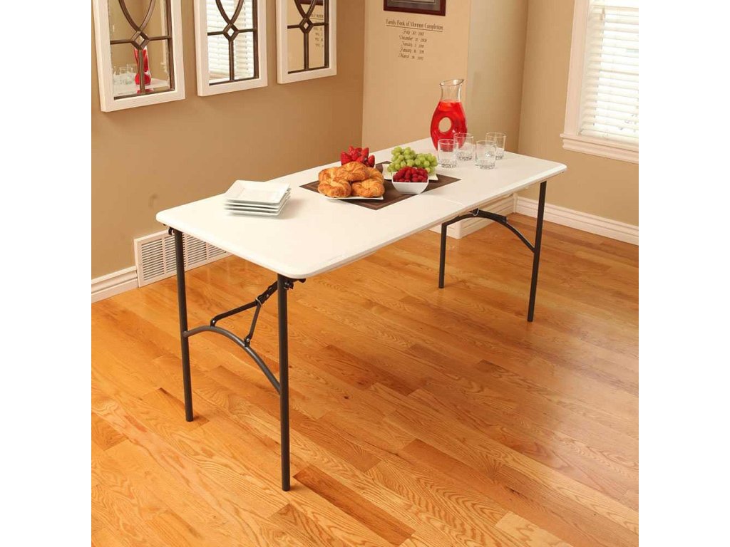 Skládací stůl vhodný do pokoje, na zahradu, do dílny. Kombinace ocelové nosné kostry a vysoce odolného UV stabilizovaného polyetylenu (HDPE). Odolnost vůči vlivu počasí. Plast na slunci nežloutne ani nekřehne. Stůl je možné jednoduše složit na polovinu.