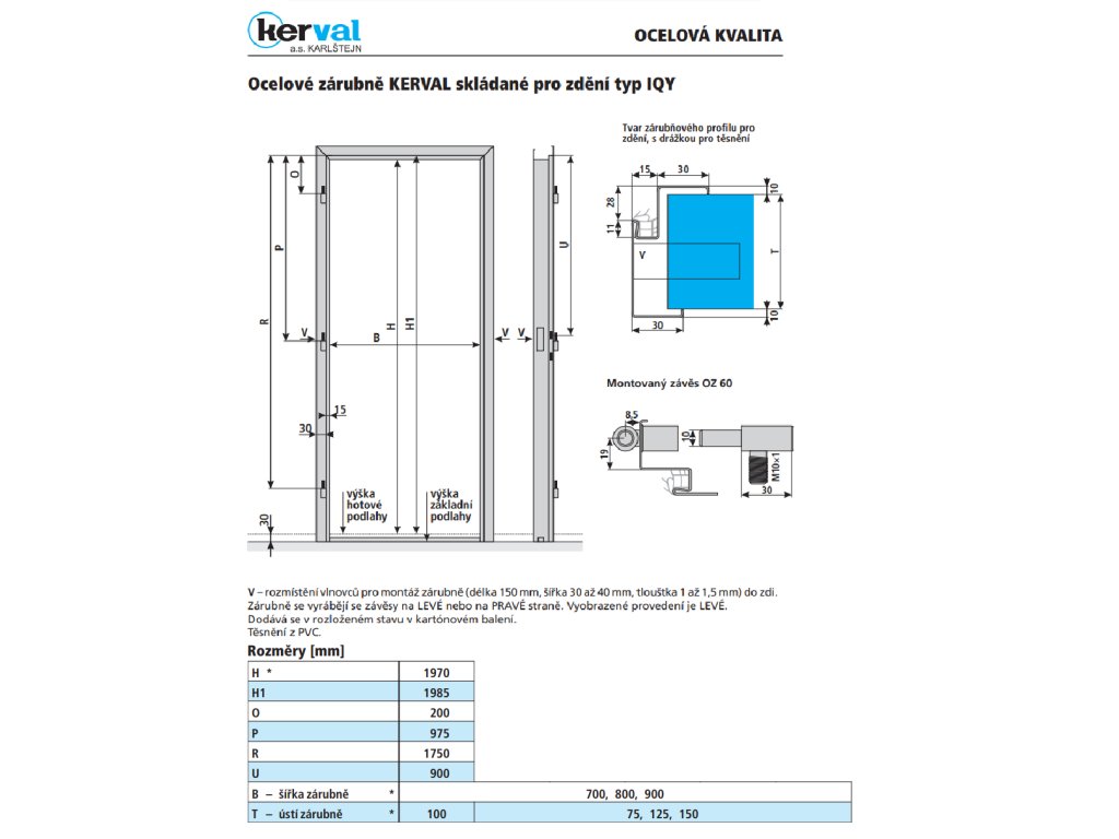 Skládané ocelové zárubně IQY - 100 / 900 mm zdění (těsnění, závěs OZ60)