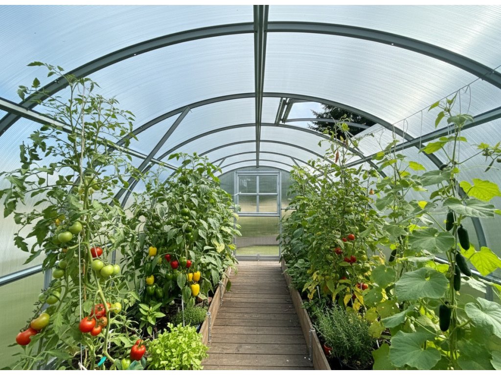 - 6 vnitřních podpěr obloukové konstrukce výrazně zvyšujících odolnost skleníku proti sněhu