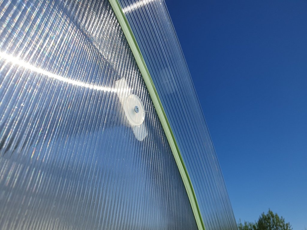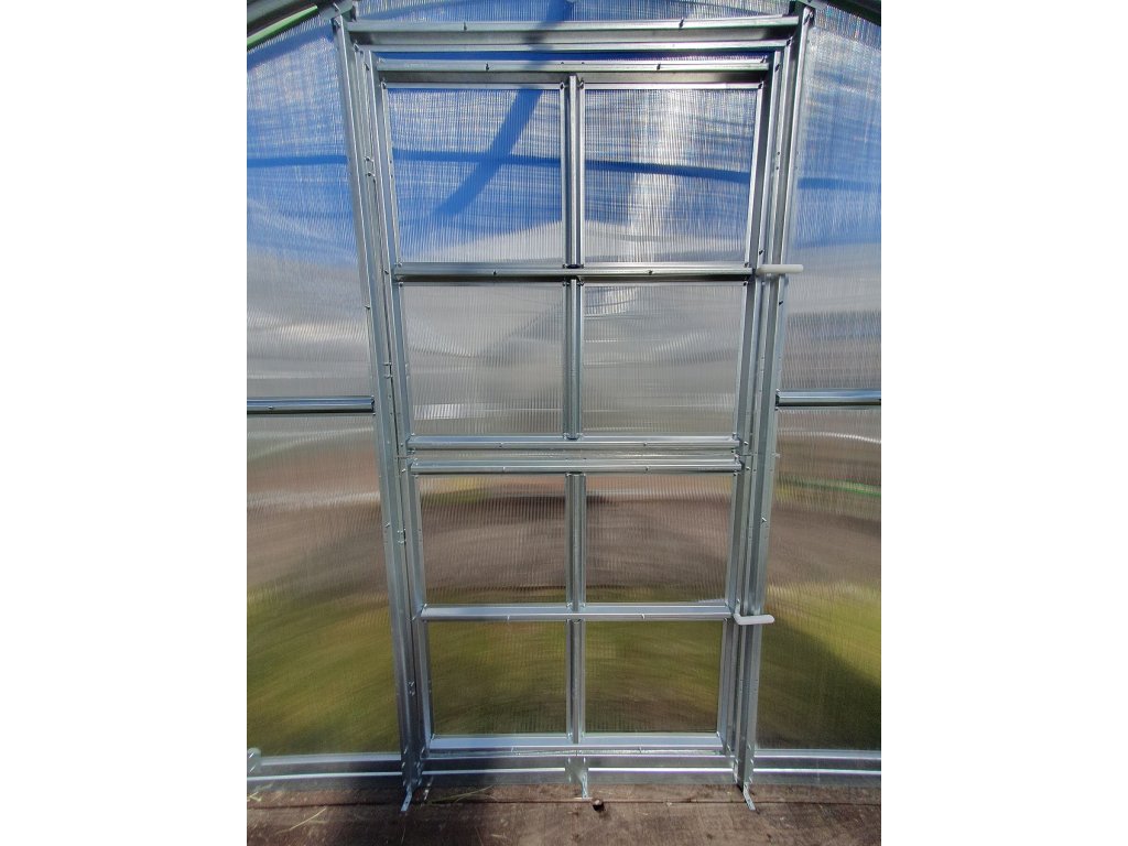 - pozor - u tohoto modelu skleníku je nutné desky pro přesný rozměr předního a zadního čela svépomocí vyřezat z dodaných předpřipravených polykarbonátových desek (max. formát dodané desky je 1,05 x 2 m)