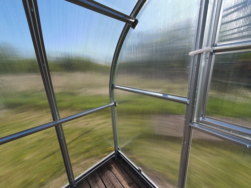 - 6 vnitřních podpěr obloukové konstrukce výrazně zvyšujících odolnost skleníku proti sněhu