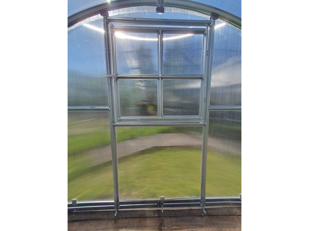 - pozor - u tohoto modelu skleníku je nutné desky pro přesný rozměr předního a zadního čela svépomocí vyřezat z dodaných předpřipravených polykarbonátových desek (max. formát dodané desky je 1,05 x 2 m)