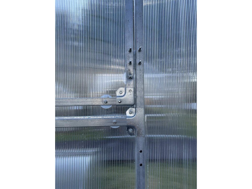 - pozor - u tohoto modelu skleníku je nutné desky pro přesný rozměr předního a zadního čela svépomocí vyřezat z dodaných polykarbonátových desek podle přiloženého návodu
