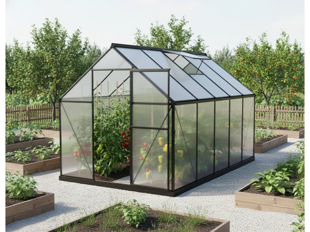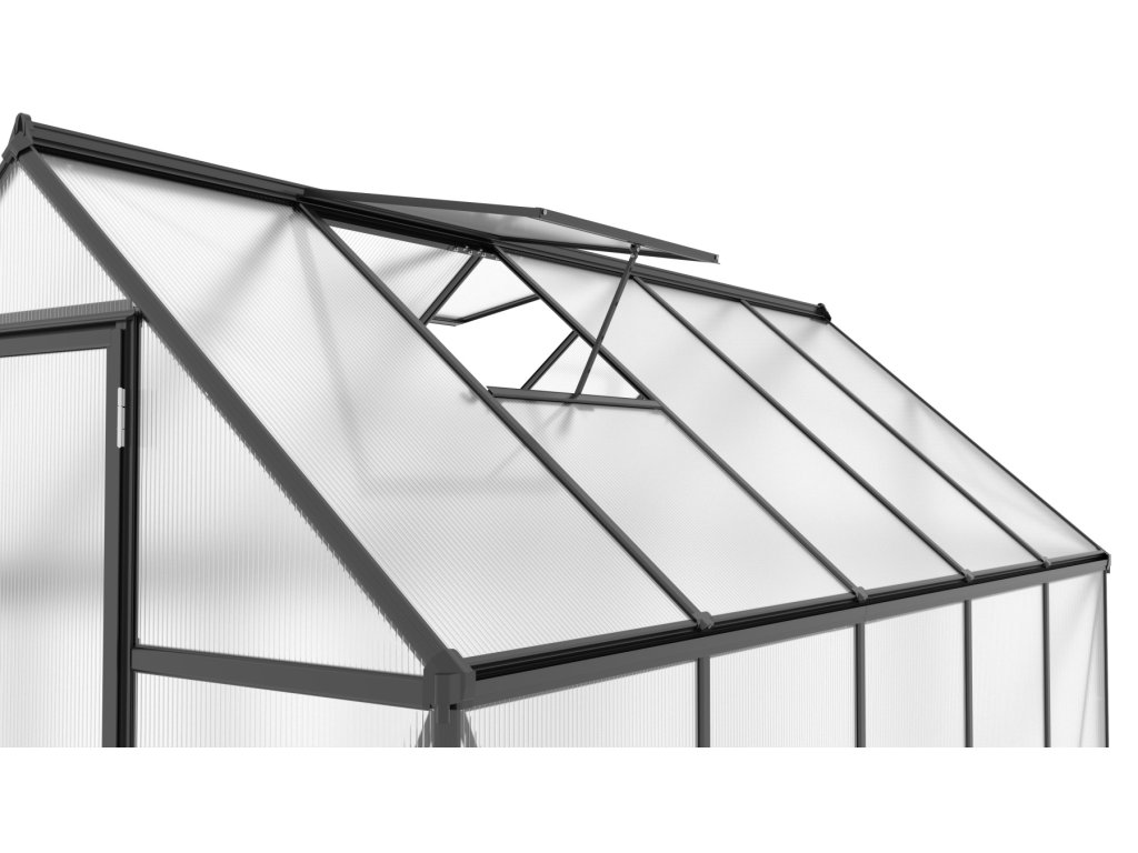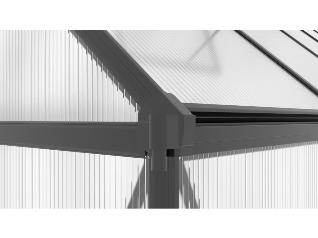 Skleníky řady SARANA patří do prémiové kategorie značkových skleníků od výrobce LANIT PLAST. Rámová konstrukce je vyrobena z eloxovaných hliníkových profilů, které zaručují dlouhou životnost a vysokou odolnost. Prosklení tvoří dvoustěnné komůrkové polykarbonátové desky o tloušťce 4 mm, které poskytují vynikající tepelně-izolační vlastnosti a optimální ochranu proti UV záření. Desky jsou pevně uchyceny do plochých i rohových H-profilů, čímž je zajištěna maximální stabilita a odolnost celé konstrukce. Skleník je dále vybaven uzavřenými bočními hranami polykarbonátu, které přispívají k jeho dlouhodobé trvanlivosti. Hlavní předností modelu jsou zesílené nosné profily, které výrazně zvyšují jeho pevnost a odolnost vůči povětrnostním podmínkám, jako je silný vítr a sněhové zatížení.