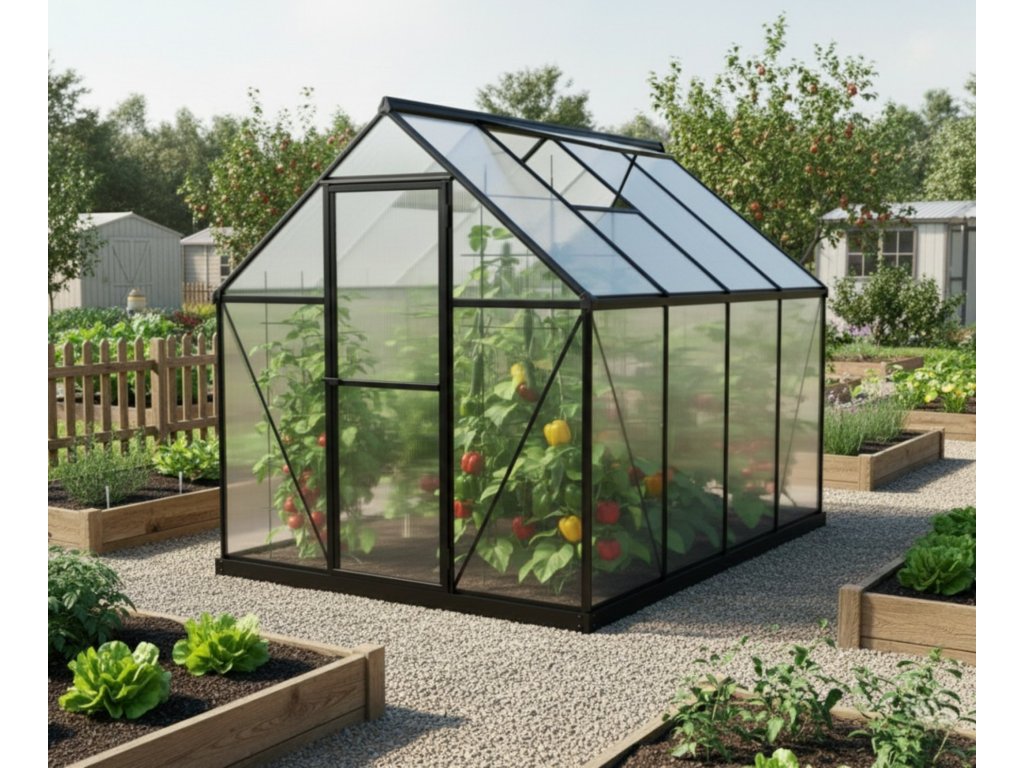 Hliníkový zahradní skleník LANITPLAST SARANA 6 x 8 PC 4 mm černý