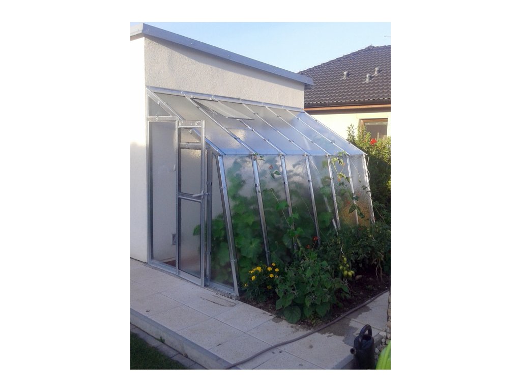 Praktický zahradní skleník ke zdi VARIANT C 10,5 s pultovou střechou je vyrobený z vysoce kvalitního žárově zinkovaného plechu tloušťky 1–3 mm v základním provedení s rozptylovým nekaleným sklem 4 mm. Díky jedinečné, průmyslově chráněné konstrukci je snadno smontovatelný. Poskytuje velkou variabilitu a modularitu. Šikmé boční stěny skleníku zvětšují plochu pro pěstování a zlepšují přístup světla k rostlinám. Ke skleníku je k dispozici přehledný montážní návod, který vám pomůže skleník snadno a rychle postavit svépomocí.