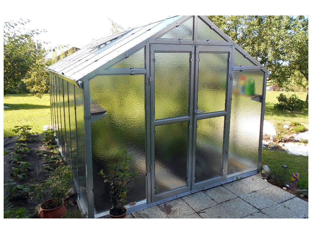 - Dvoje prodloužené dveře - v obou čelech skleníku dvoukřídlové prodloužené dveře 190 x 105 cm