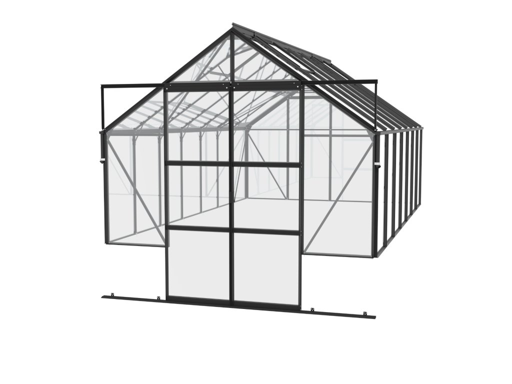 Obsahem balení jsou dvoukřídlé posuvné dveře (š x v otvoru = 1,22 x 1,94 m), AL profily, prosklení, 4x střešní ventilační okénko s manuálním otevíráním, veškerý spojovací materiál. Ke skleníku je možné dokoupit řadu nadstandardního příslušenství - poličky, regály, další větrací střešní i boční okénka, automatické otvírače k těmto okénkům, okapové sady, teploměry, vlhkoměry, zavlažovací zařízení, elektrické odporové vytápění půdy.