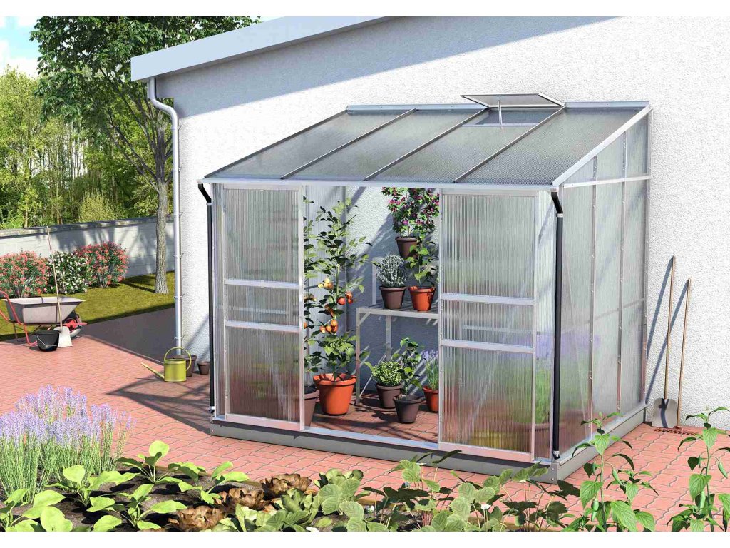 Skleníky ke stěně řady IDA jsou zařazeny do kategorie PREMIUM - skleník je vyrobený značkovým výrobcem z Velké Británie. Skleník je vyrobený z eloxovaných hliníkových profilů. Prosklení je z tepelně-izolačních komůrkových polykarbonátových desek síly 4 mm. Prosklení je do hliníkových profilů kotveno pomocí ocelových sponek.