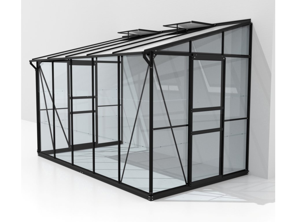 Hliníkový zahradní skleník VITAVIA IDA 6500 čiré sklo 3 mm + PC 6 mm černý