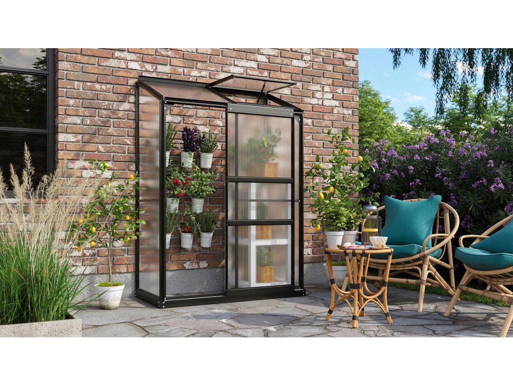 Hliníkový zahradní skleník VITAVIA IDA 900 PC 6 mm černý