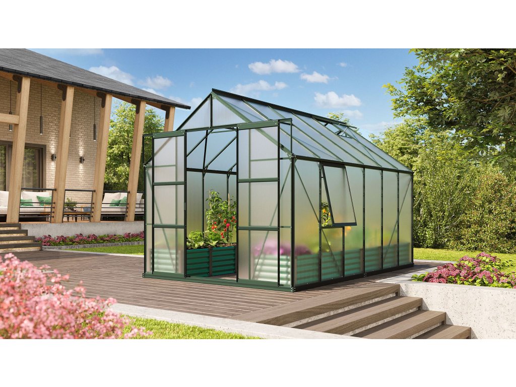 Hliníkový zahradní skleník VITAVIA URANUS 9900 PC 4 mm zelený