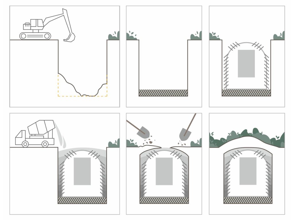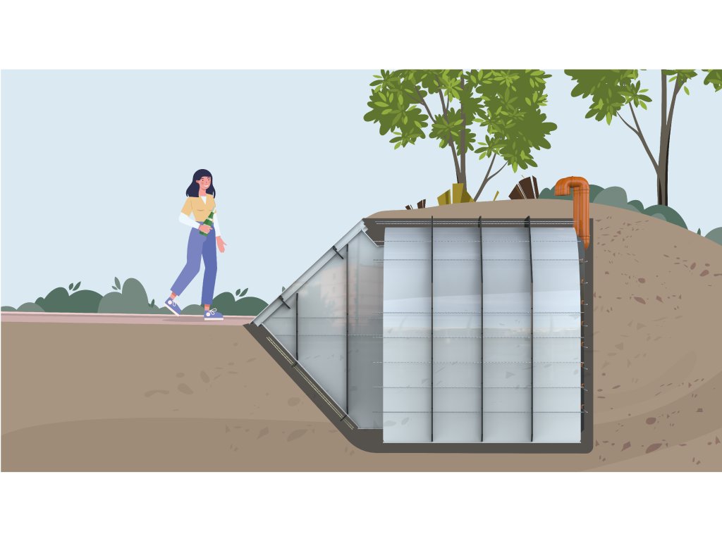 Jeho částečně zapuštěná konstrukce umožňuje snadnou, rychlou a cenově dostupnou instalaci. A s využitím části vytěžené zeminy můžete vytvořit násep nad sklepem pro tepelnou izolaci a estetický vzhled.
