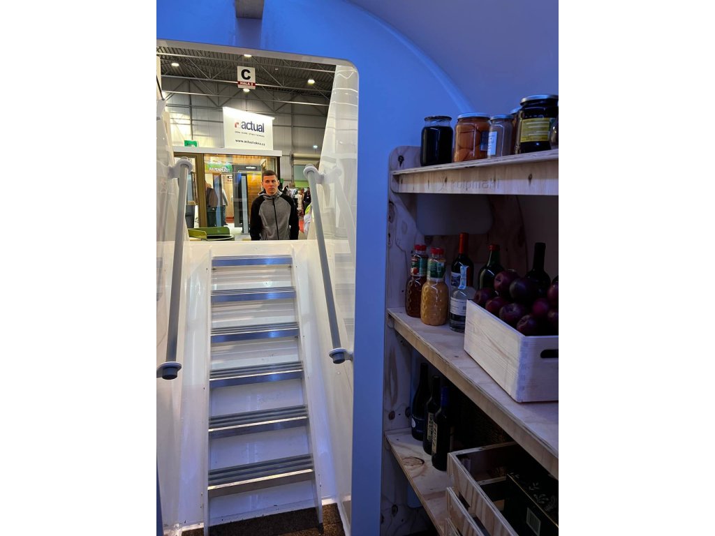 Pohodlné schodiště s odolným hliníkovým profilem, klasickými schody a širokým vstupem je navrženo tak, aby byl sklep co nejpřístupnější i s plnýma rukama.