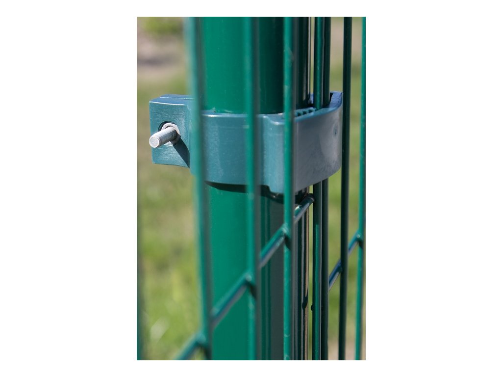 Univerzální příchytka se šroubem pro spolehlivou instalaci svařovaných plotových panelů PILOFOR na kulaté sloupky IDEAL s průměrem 48 mm