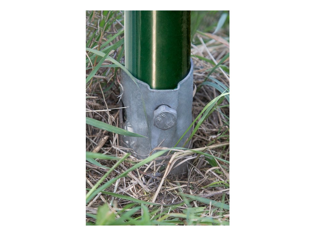 Průběžná objímka pro spolehlivou instalaci svařovaných plotových panelů PILOFOR na kulaté sloupky IDEAL s průměrem 48 mm