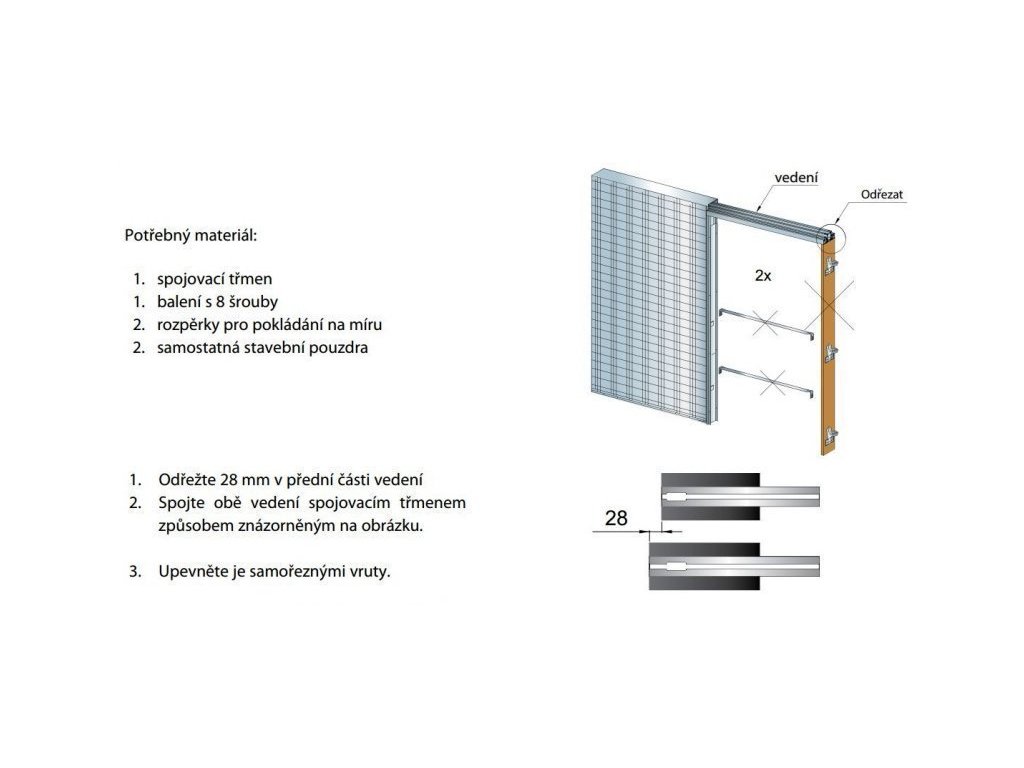 - posuvný systém tvoří hliníková kolejnice s bočními PVC profily, které vymezují minimální sílu hotové příčky