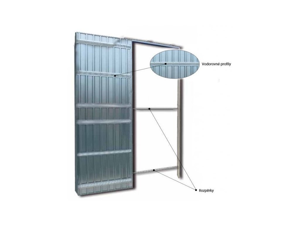 - na boku se nacházejí vodorovné profily z pozinkovaného plechu o tloušťce 0,6 mm, které slouží k zesílení konstrukce a zároveň pro usnadnění aplikace a upevnění sádrokartonové tabule prostřednictvím příslušných šroubů dodávaných v rámci výbavy