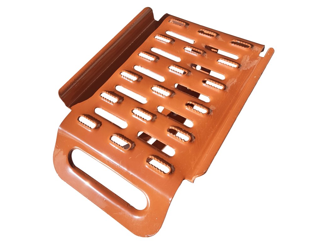 Střešní nášlap UNI, jinak zvaný nášlap tašky, je vyrobený z kvalitní pozinkované oceli a slouží pro rychlý a bezpečný pohyb na šikmých střechách. Obsahuje kolébkovitý regulovatelný držák včetně montážních šroubů a usnadňuje pohyb a práci na střeše. Poskytuje protiskluzový povrch, výbornou antikorozní ochranu, odolnost proti povětrnostním vlivům, mrazu i stárnutí a také rychlou a snadnou montáž s pomocí přímo určených systémových držáků, které jsou přizpůsobené k instalaci na různé druhy střešních krytin. Tento typ nášlapu lze univerzálně použít pro všechny druhy střešních krytin.