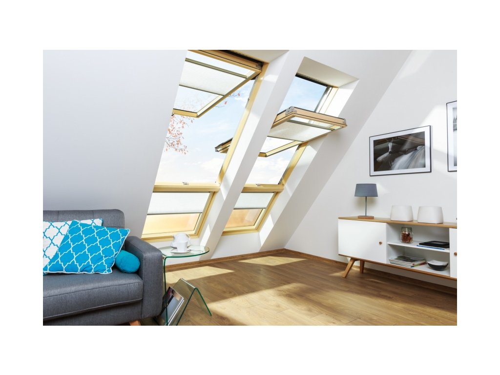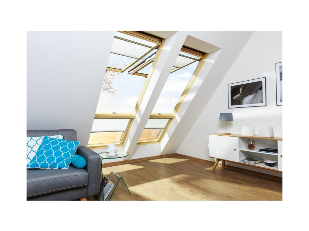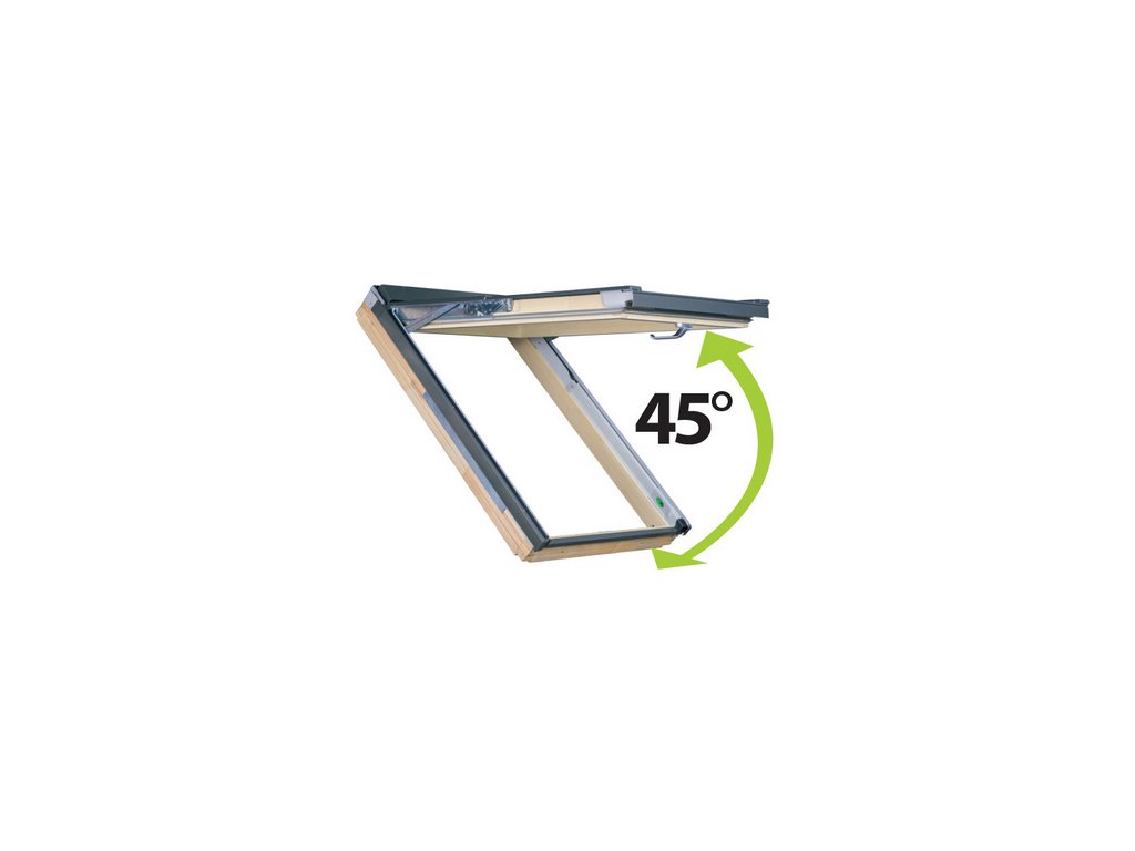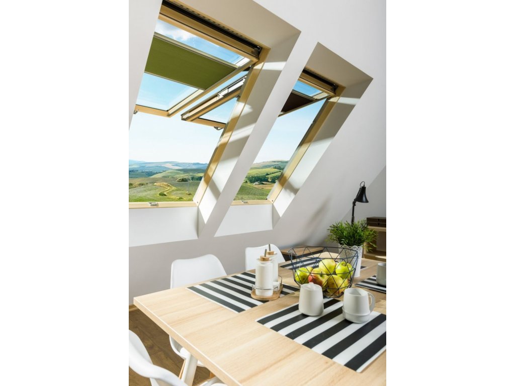 Střešní okno dřevěné FAKRO FPU-V U3 preSelect 78 x 140 cm - vybavené dvěma oddělenými funkcemi otevírání, výklopnou a kyvnou