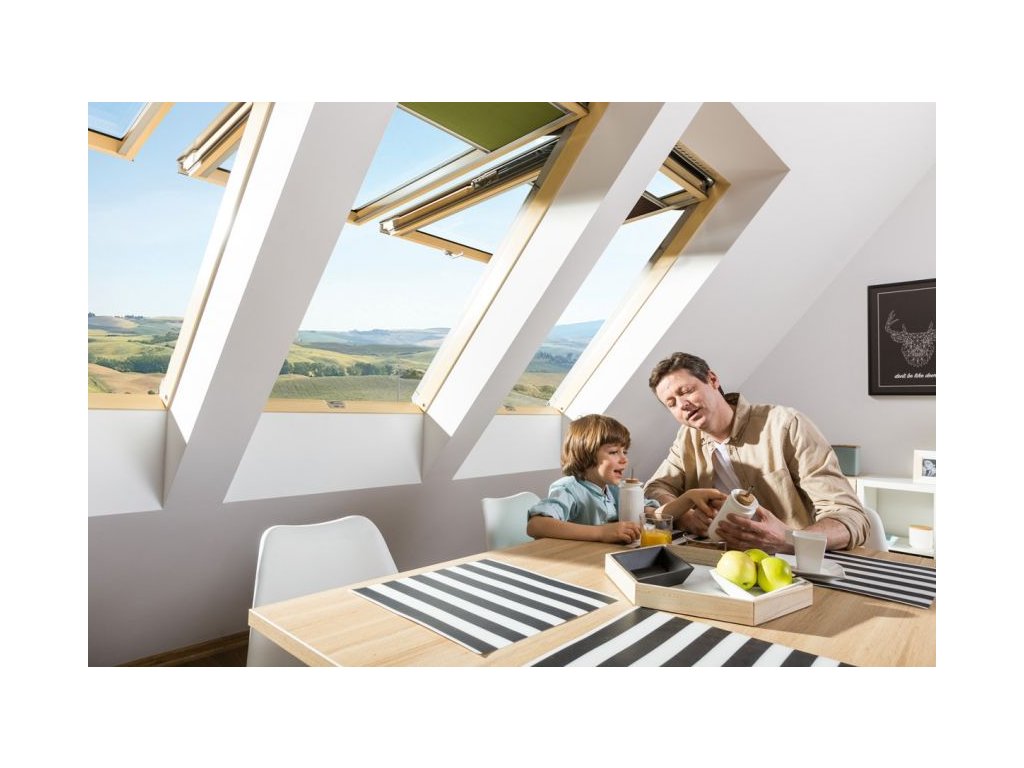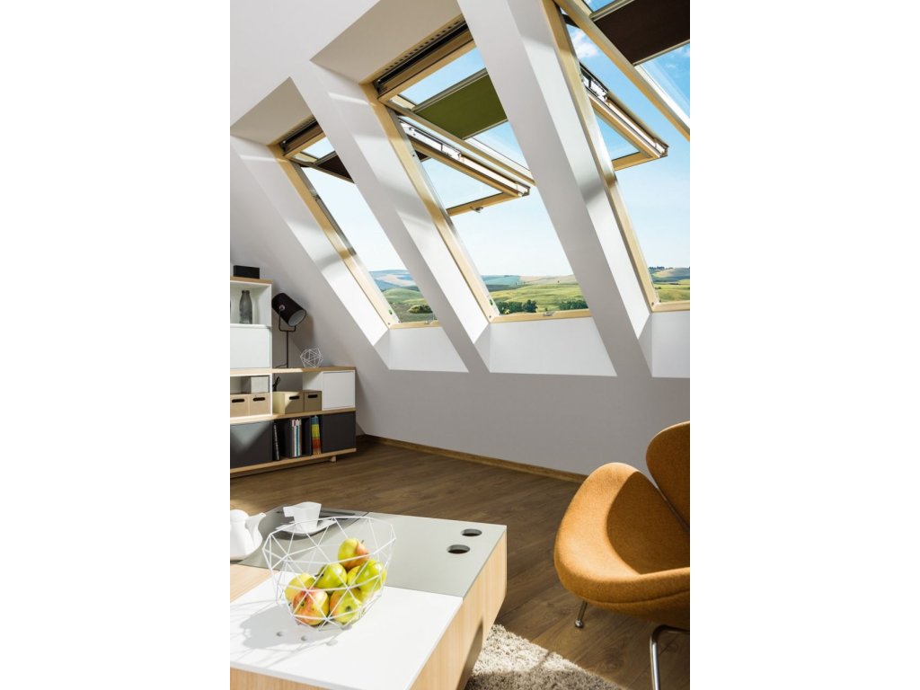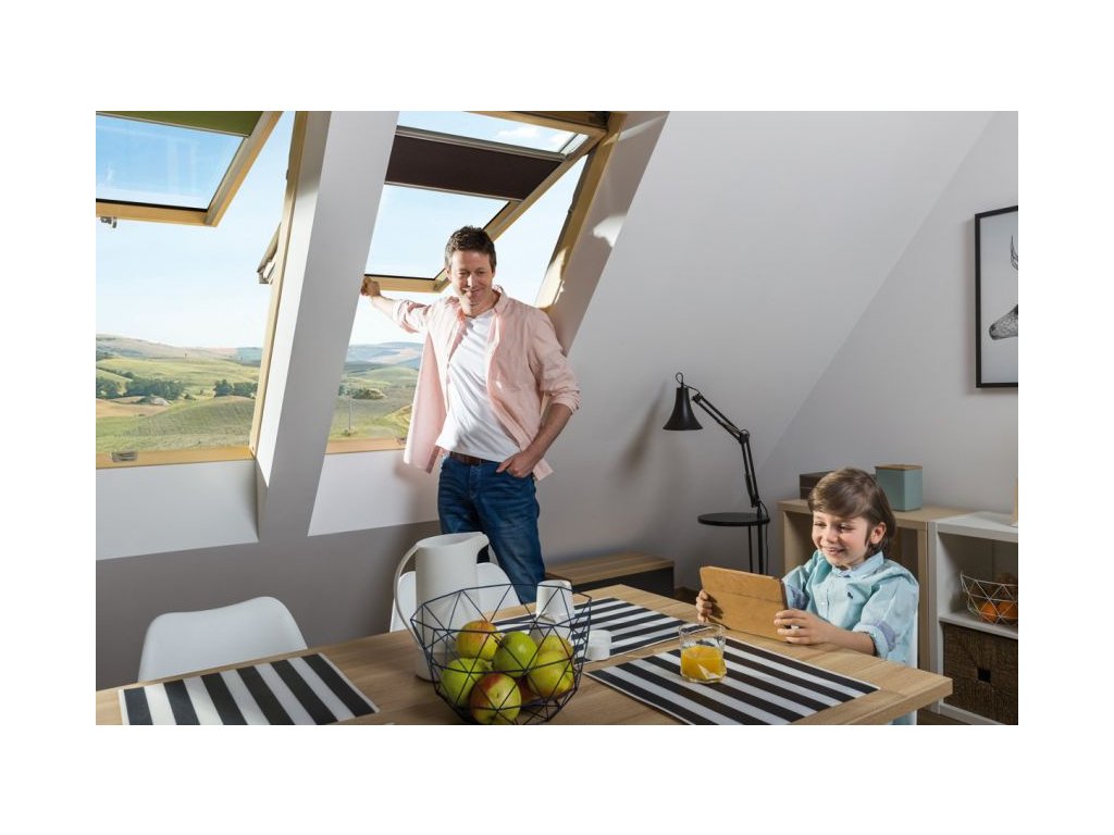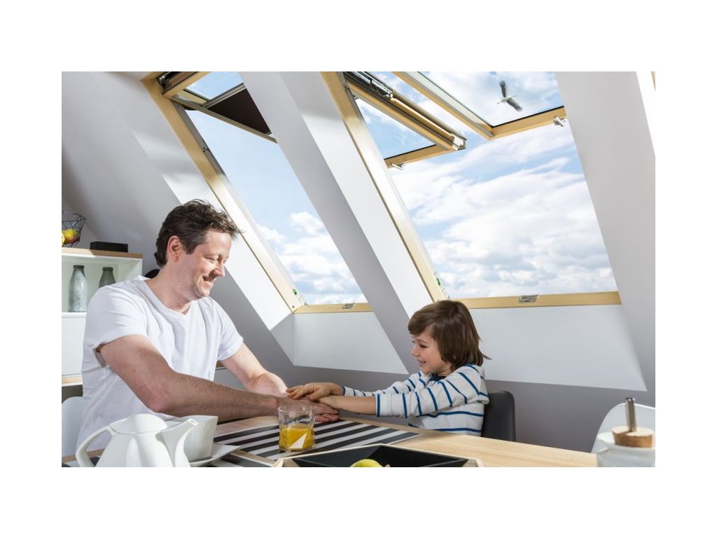 Střešní okno dřevěné FAKRO FPU-V U3 preSelect 78 x 140 cm - vybavené dvěma oddělenými funkcemi otevírání, výklopnou a kyvnou