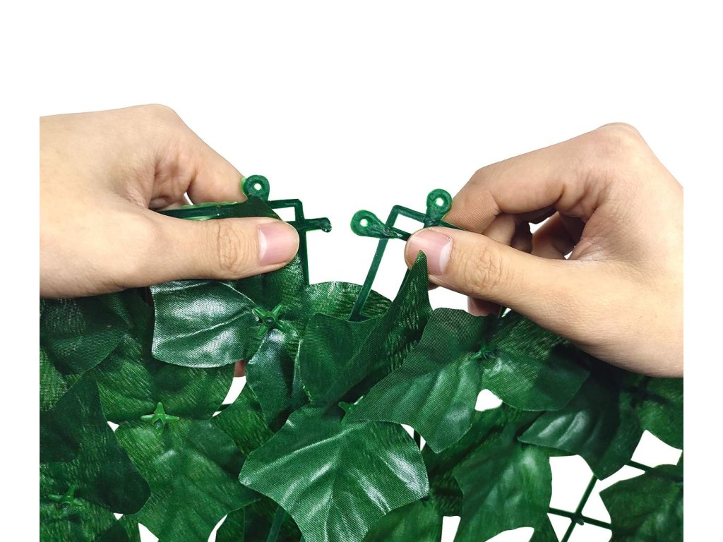 Umělý živý plot PRODOMOS v provedení imitace břečťanu se perfektně hodí pro dekoraci plotů, teras a balkónu. Obsahuje plastovou nosnou konstrukci a poskytuje potřebné soukromí v přírodním designu. Odolává UV záření, ohni, větru i sněhu. Snadno se instaluje pomocí vázacího drátu nebo stahovacích pásků a je možné ho využít celoročně uvnitř i venku.