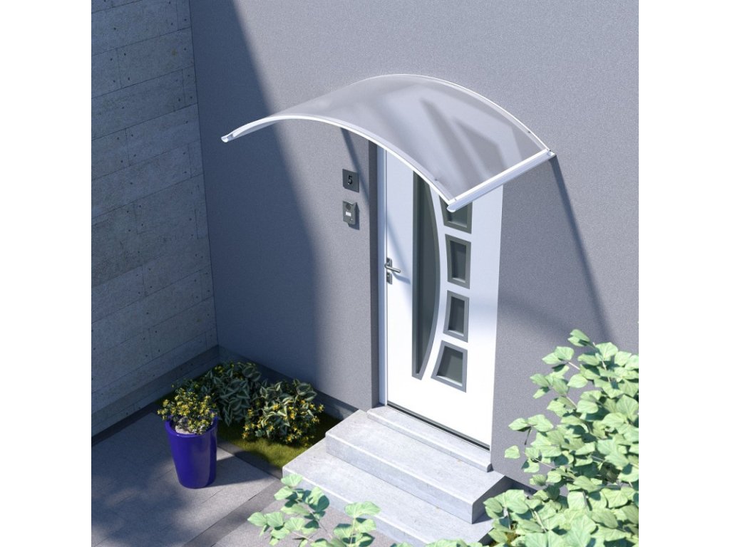 Oblouková stříška je vyrobená z práškově lakovaného hliníku. Stříška je zasklená čirým komůrkovým polykarbonátem síly 4,5 mm s oboustranným UV filtrem (značka LEXAN® - vyrobeno v Rakousku). Jde o velmi kvalitní značkový polykarbonát od jednoho z nejlepších světových výrobců. Používá se k zastřešení vchodů, balkonů, výloh obchodů.... Hliníková konstrukce perfektně odolává vlivům počasí a i po letech je pevná a stabilní. V naší nabídce si můžete prohlédnout také rovné stříšky.